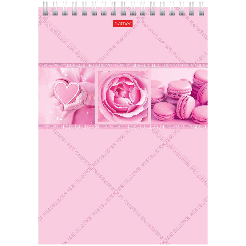 Блокнот А5 96л., на гребне Hatber 'Rose', розовый блок, глянц. ламинация