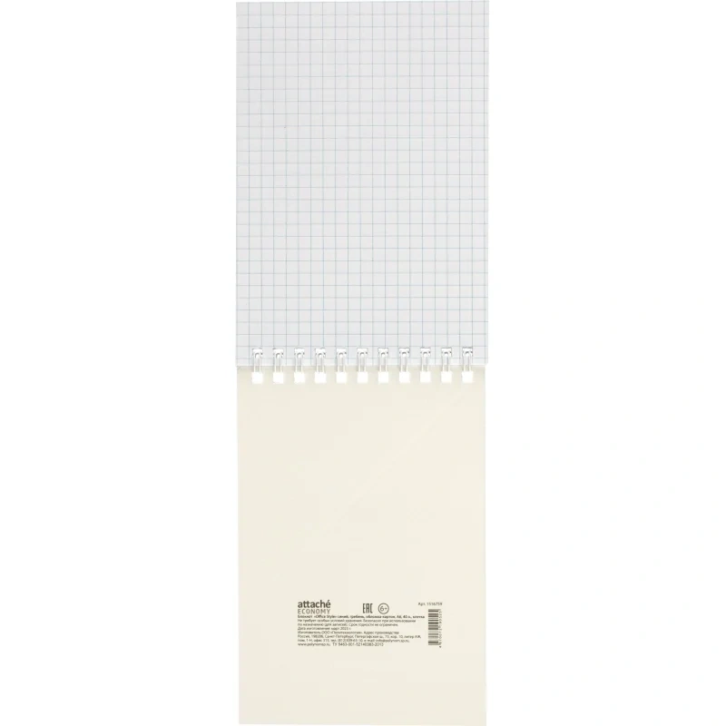 Блокнот Attache Economy A6 на спирали предназначен для записей, используется дома и в офисе. Обложка изготовлена из мелованного картона с цветной печатью в синих тонах, плотность 200 г/кв.м. Внутренний блок — белая офсетная бумага 65 г/кв.м, белизна — 100%. Блокнот толщиной 40 листов в клетку. Размер блокнота — 108×146 мм.