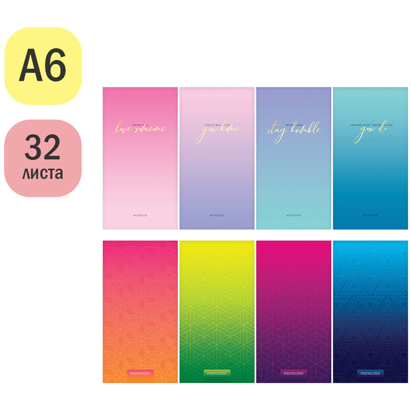 Блокнот А6 32л. на скрепке ArtSpace 'Моноколор Ultra. Микс'