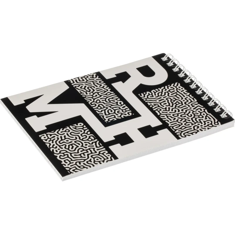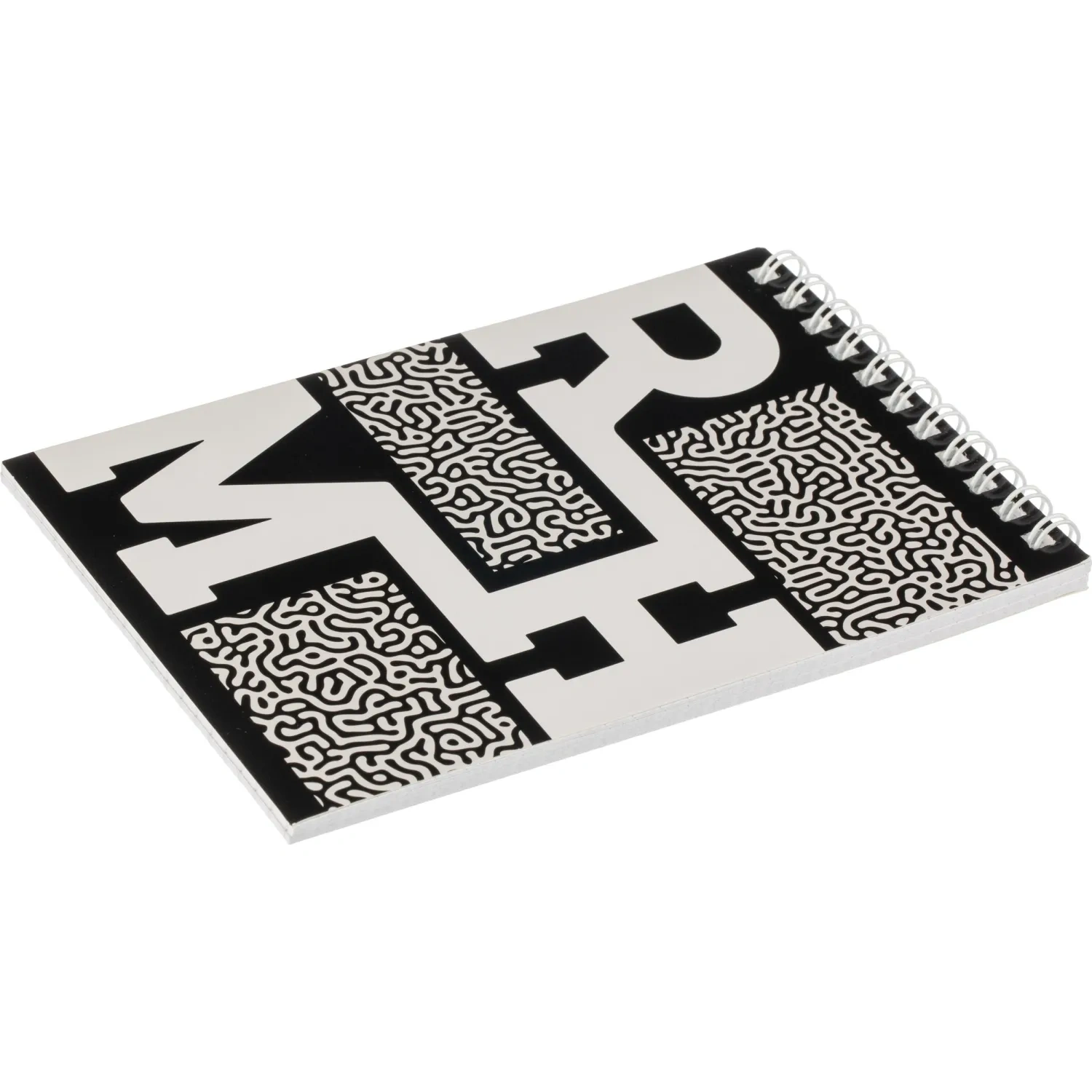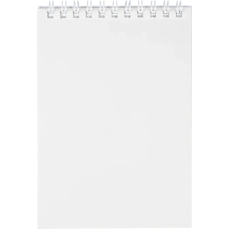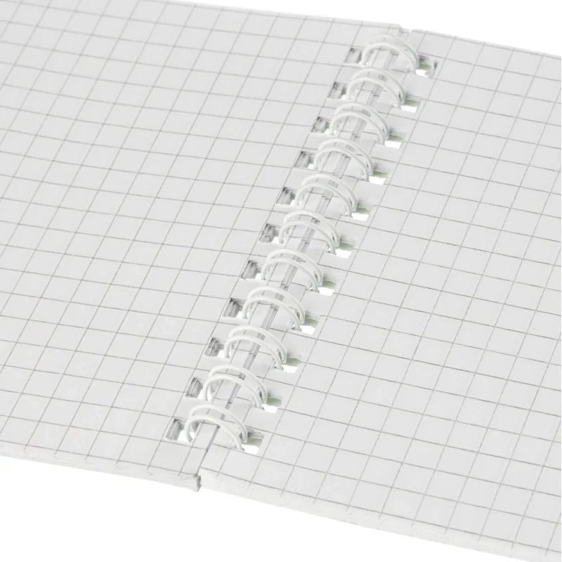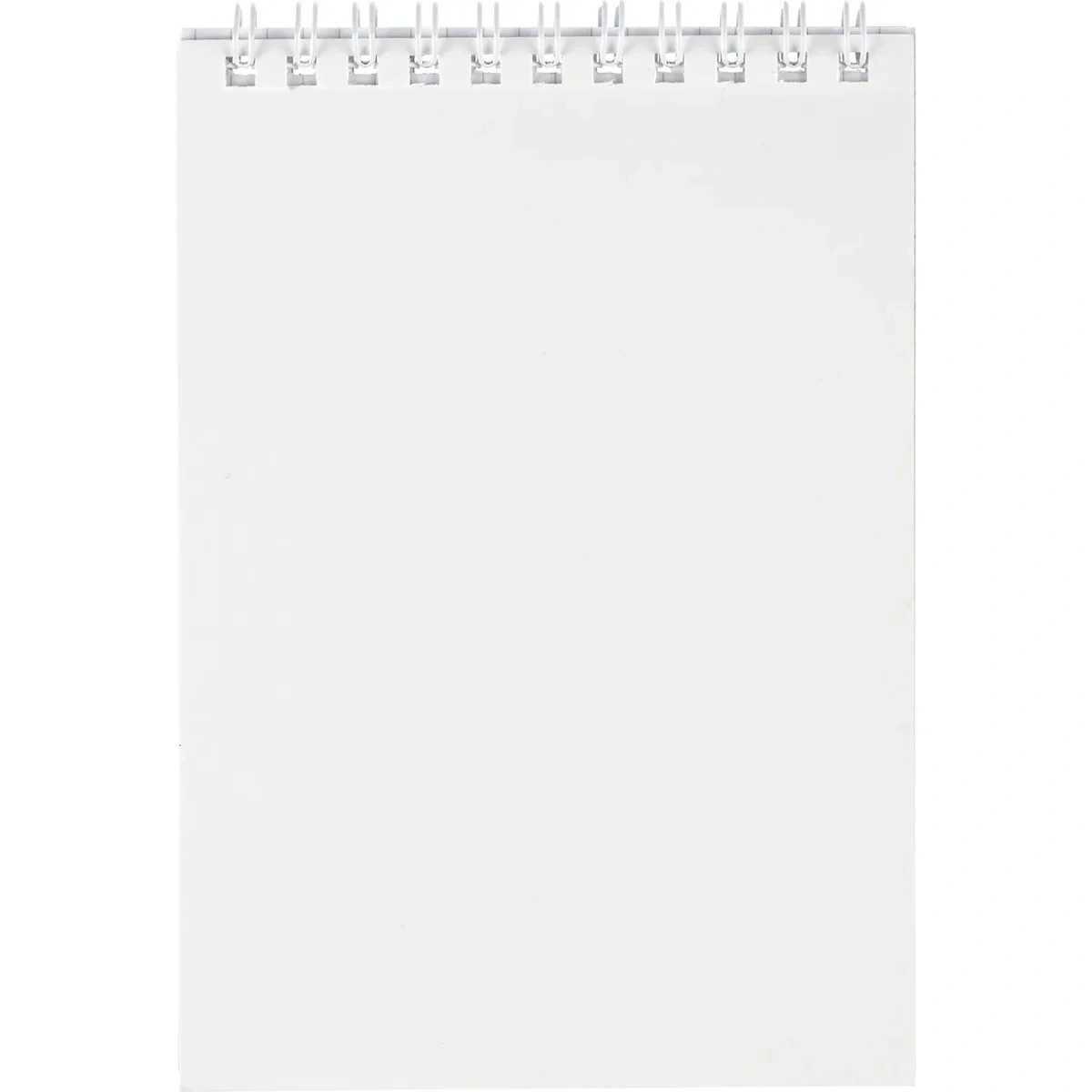 Блокнот Concept формата А6 содержит 50 листов белой офсетной бумаги в клетку. Обложка и подложка изготовлены из картона 200 г/кв.м. Печать в одну краску. Блокнот скреплен стальной спиралью сверху. Размер блокнота 146×102 мм.