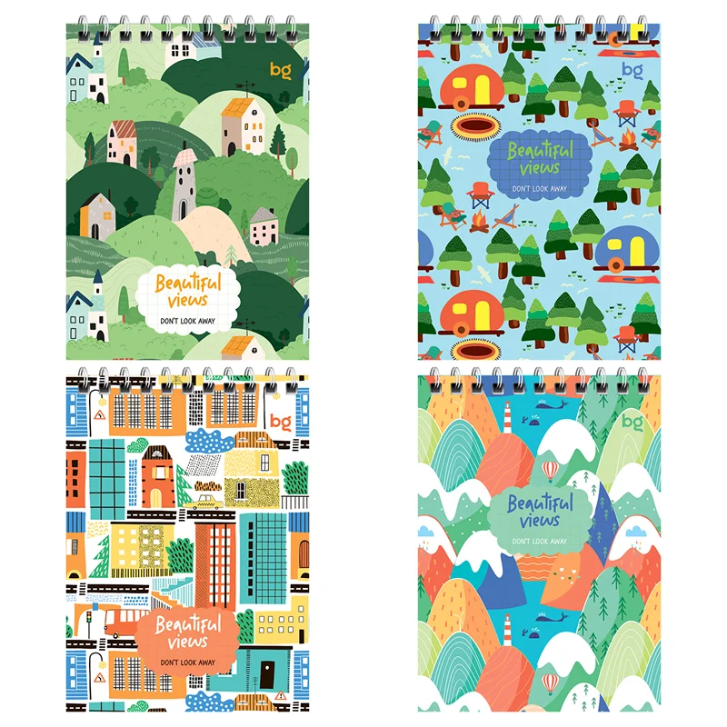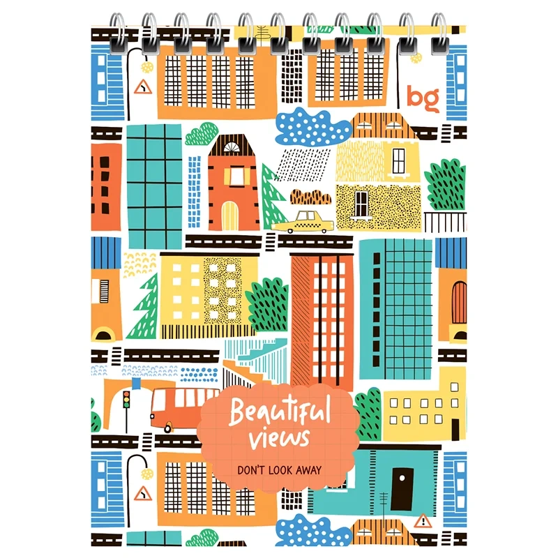 Блокнот BG «Паттерн. Прекрасный вид» имеет формат A6 и размер 100*145 мм. Внутренний блок из 60 листов офсетной бумаги плотностью 60 г/м2. Линовка ? в клетку. Тип скрепления ? евроспираль. Обложка изготовлена из мелованного картона. Блокнот идеально подойдёт для записи важных заметок и станет стильным аксессуаром.