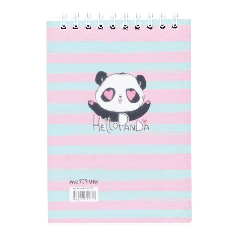Состоит из 60 листов размером 142*202 мм дизайнерской офсетной бумаги белого цвета плотностью 60г/м2. Линовка – клетка. Обложка – прозрачный пластик с тиснение фольгой, дополнительный лист с яркой иллюстрацией. Милые панды на обложке блокнота не оставят равнодушными.