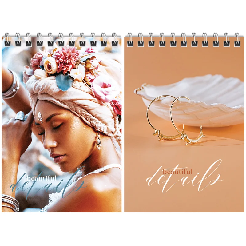Внутренний блок – офсет 60 г/м?. Обложка – мелованный картон, ВД-лак. Объем блока – 80 л. Формат А6.