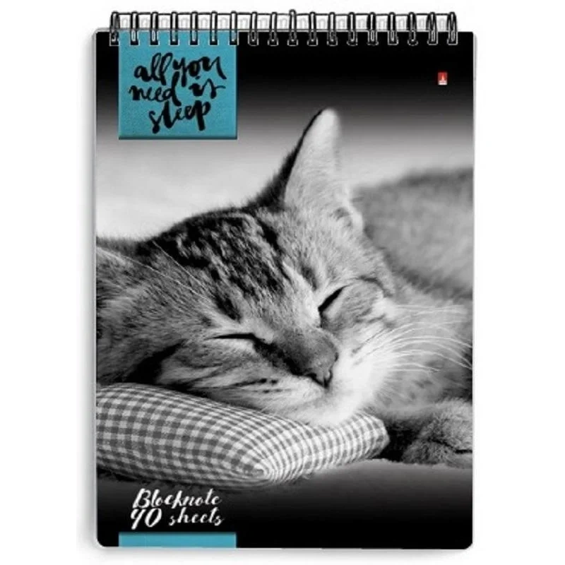 Блокнот Альт Кошки формата А5. Обложка картон плотностью 235 г/кв.м. 40 листов фиксирует металлическая пружина, обеспечивающая вертикальное раскрывание. Страницы в клетку, белая бумага плотностью 55 г/кв.м. Размеры внутреннего блока — 127×200 мм. Цвета обложки представлены в ассортименте — 5 вариантов дизайна (без возможности выбора). Внимание! Товар поставляется в несколькиx вариантаx цвета/дизайна (без возможности выбора).
