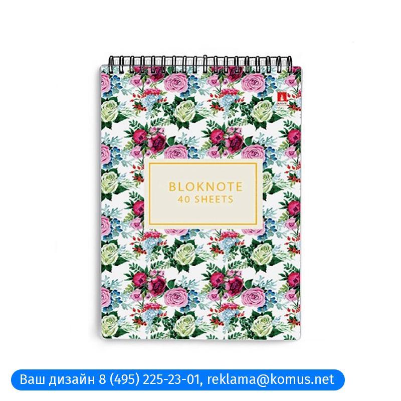 Блокнот Альт Цветы паттерн, А7, 40 листов, в клетку, на спирали, картон
