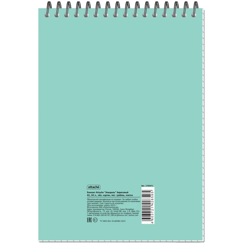 Блокнот Attache бирюзовый, А5, 60 листов, в клетку, на спирали, картон
