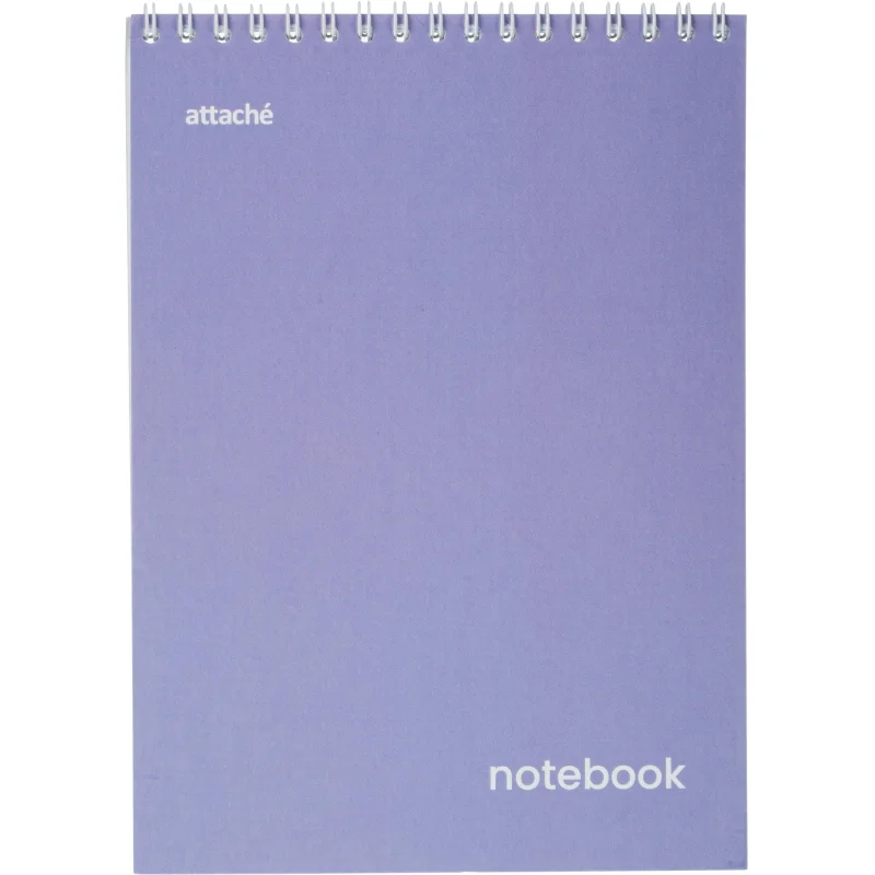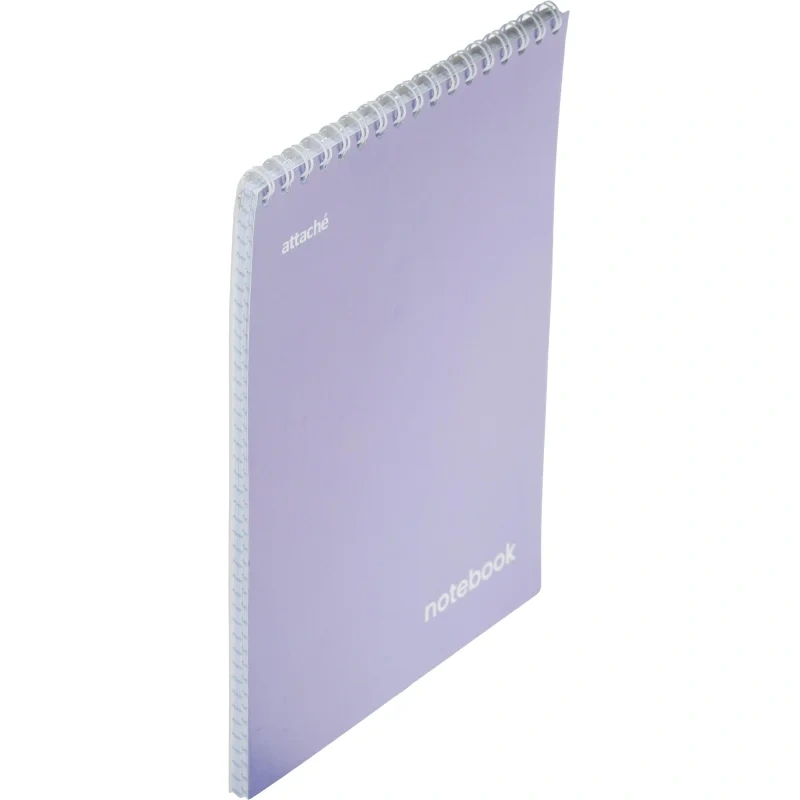Блокнот Attache имеет формат А5. Блокнот в обложке, выполненной из мелованного картона, плотностью 200 г/кв.м. Дизайн обложки однотонный, в стильных пастельных тонах (фиолетовый). Внутренний блок состоит из 60 листов (120 страниц), разлинованных в клетку. Блок: белая, офсетная бумага, плотность 65 г/кв.м. Размер изделия: 146×204 мм. Бумага высокой степени белизны по плотности соответствует качественной офисной бумаге.