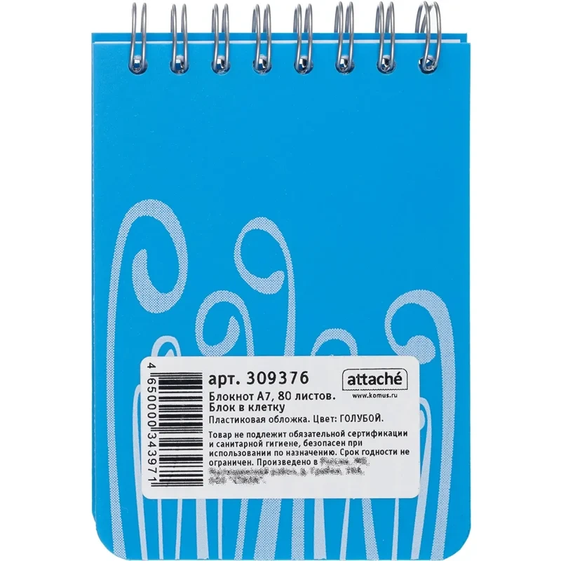 Блокнот Attache Fantasy голубой, А7, 80 листов, в клетку, на спирали, пластик