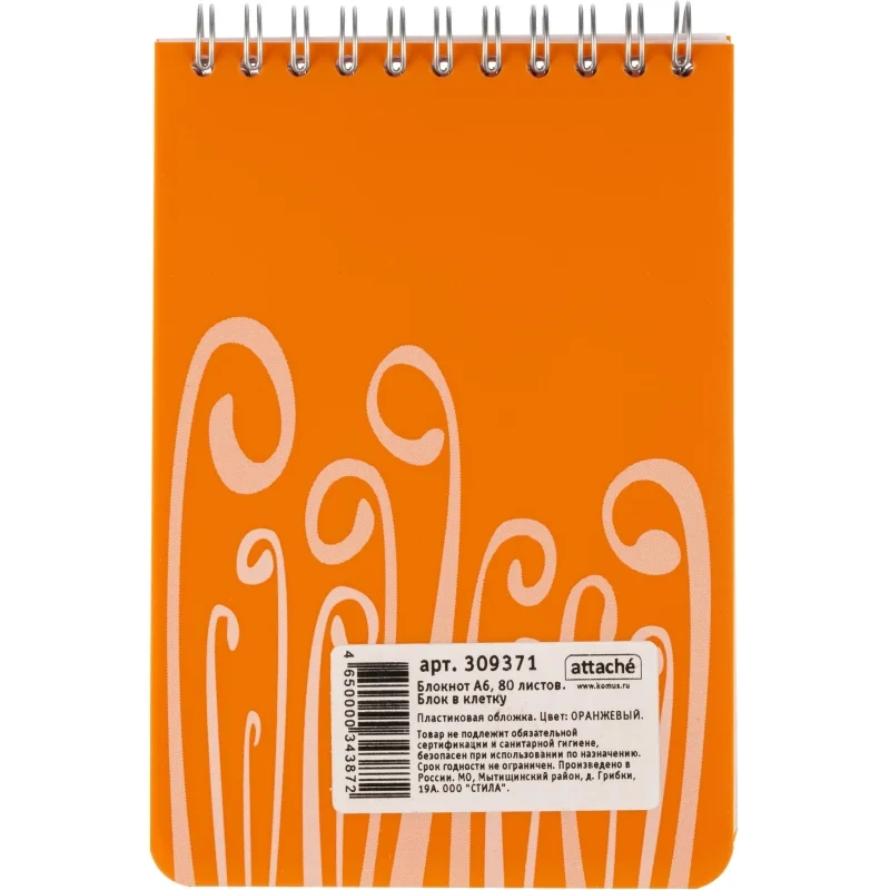 Блокнот Attache Fantasy оранжевый, А6, 80 листов, в клетку, на спирали, пластик