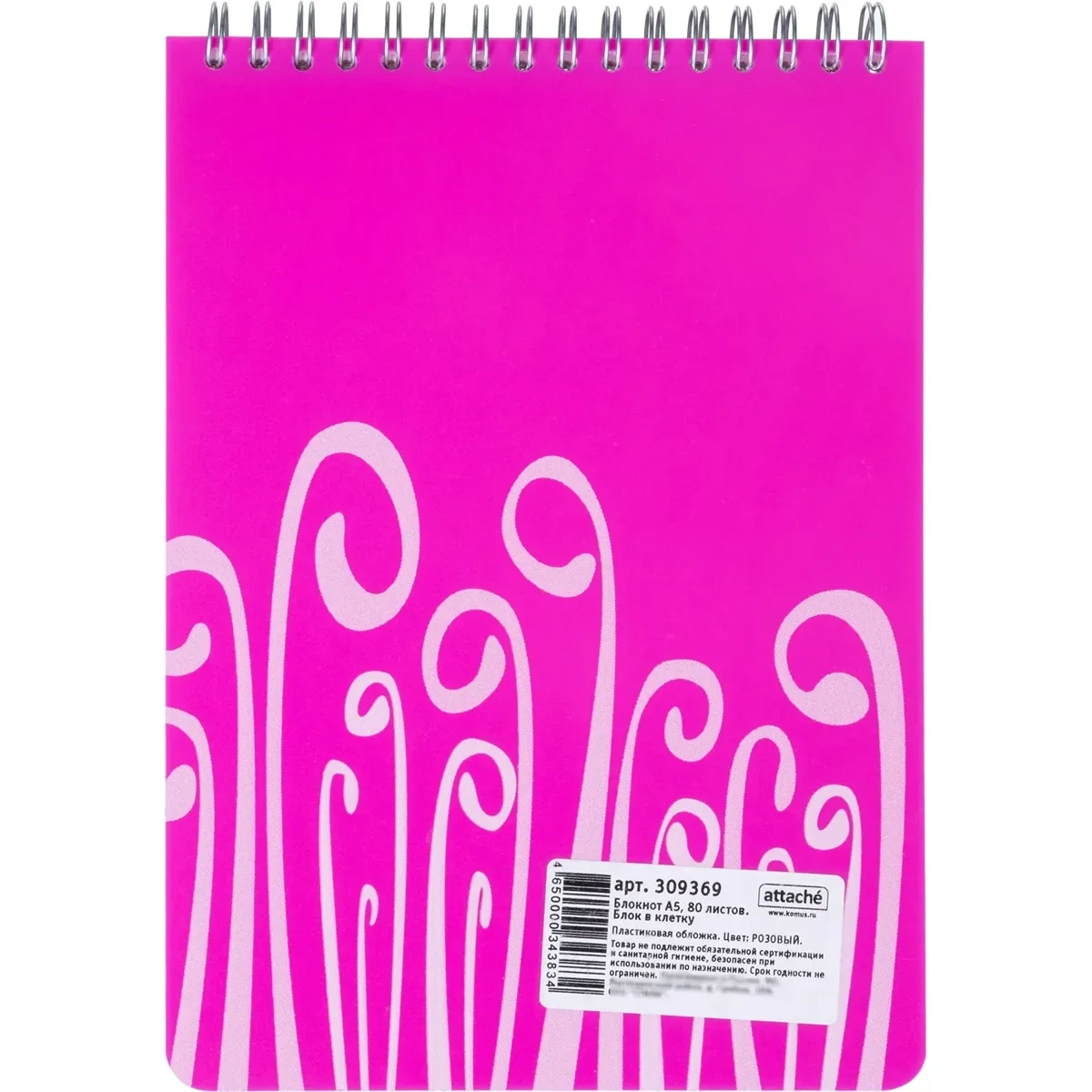 Блокнот Attache Fantasy розовый, А5, 80 листов, в клетку, на спирали, пластик