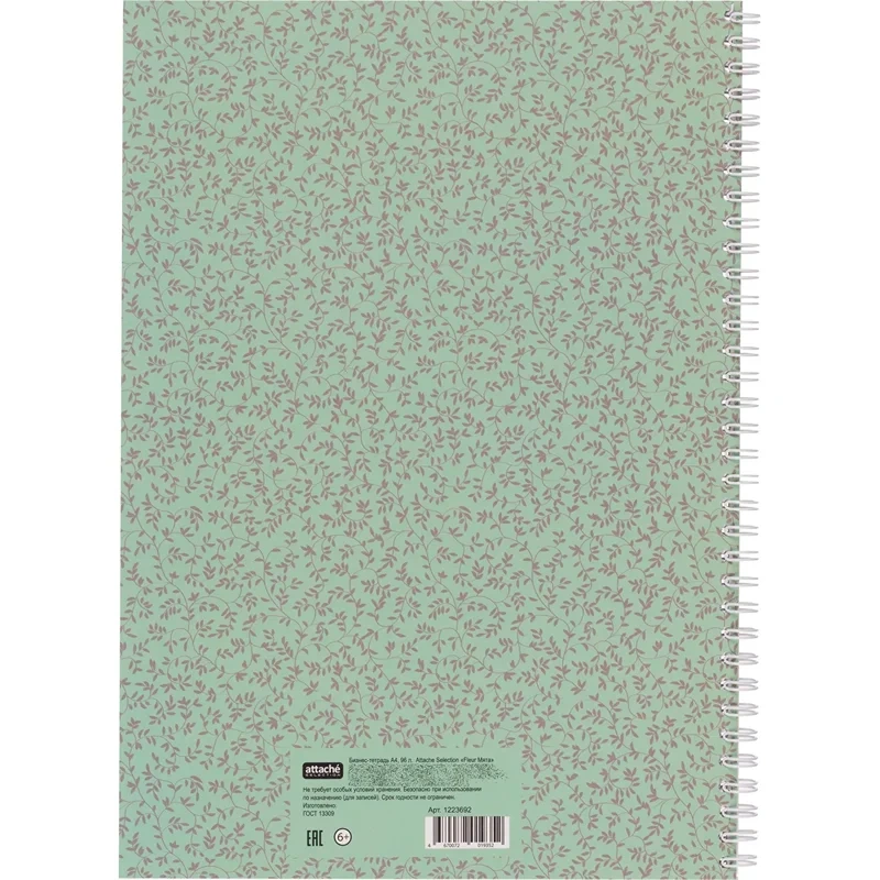 Бизнес тетрадь Attache Fleur Мята, А4, 96 листов, в точку, на спирали, картон