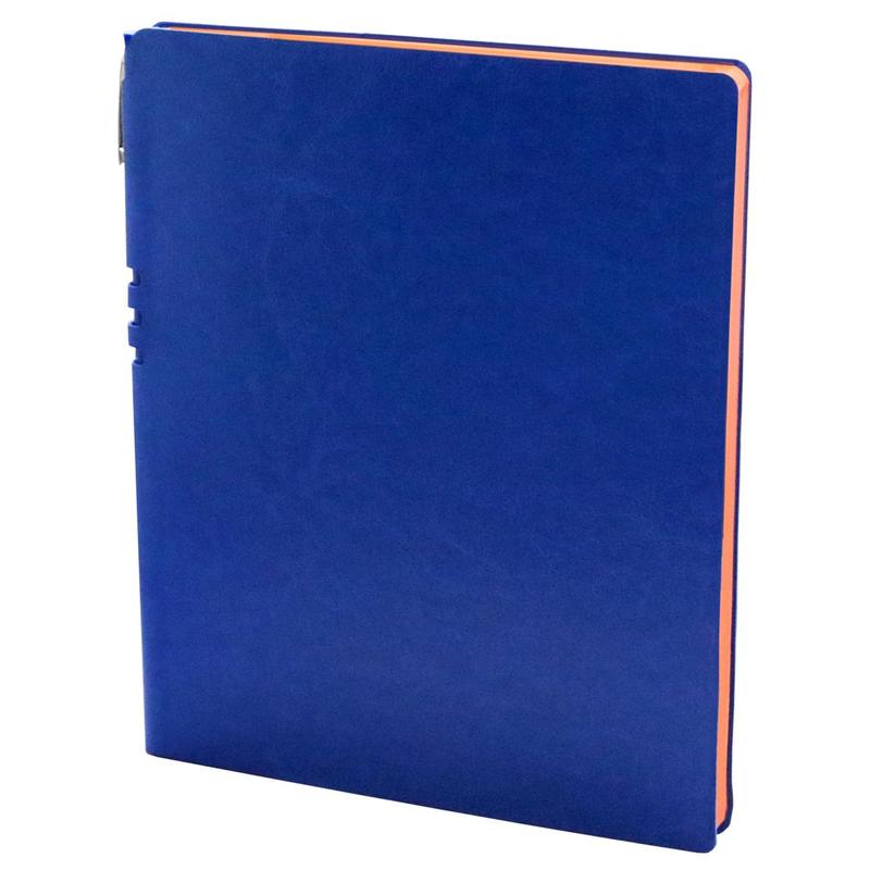Бизнес-тетрадь, 220?265 мм (размер внутреннего блока 205?260 мм), 192 страницы, офсет 70 г/кв.м, красочность блока 1+1, клетка. Цвет ярко-синий, форзац и нахзац серый, срез оранжевый, однотонная гибкая обложка из высококачественного переплетного материала, имитирующего натуральную кожу. Укомплектована шариковой ручкой синего цвета. Гладкая фактура с легким блеском. Возможно нанесение логотипа на обложку любым способом тиснения. Минимальный тираж под нанесение логотипа от 30 штук.
