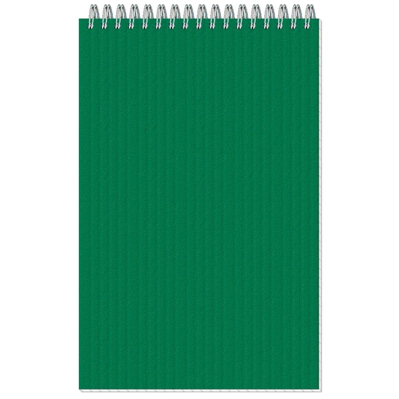 Блокнот Микровельвет офисного дизайна. Однотонная обложка зеленого цвета, изготовленная из дизайнерского картона с тиснением. Плотность обложки — 280 г/кв.м. Внутренний блок, скрепленный по верхнему краю металлической спиралью, содержит 50 листов (100 страниц) белой, офсетной бумаги с разлиновкой в клетку. Размер изделия: 130×200 мм. Плотность блока — 60 г/кв.м. Бумага высокой степени белизны по плотности соответствует качественной офисной бумаге. Блокнот имеет приближенный формат А5. Минимальный тираж под нанесение логотипа от 30 штук.