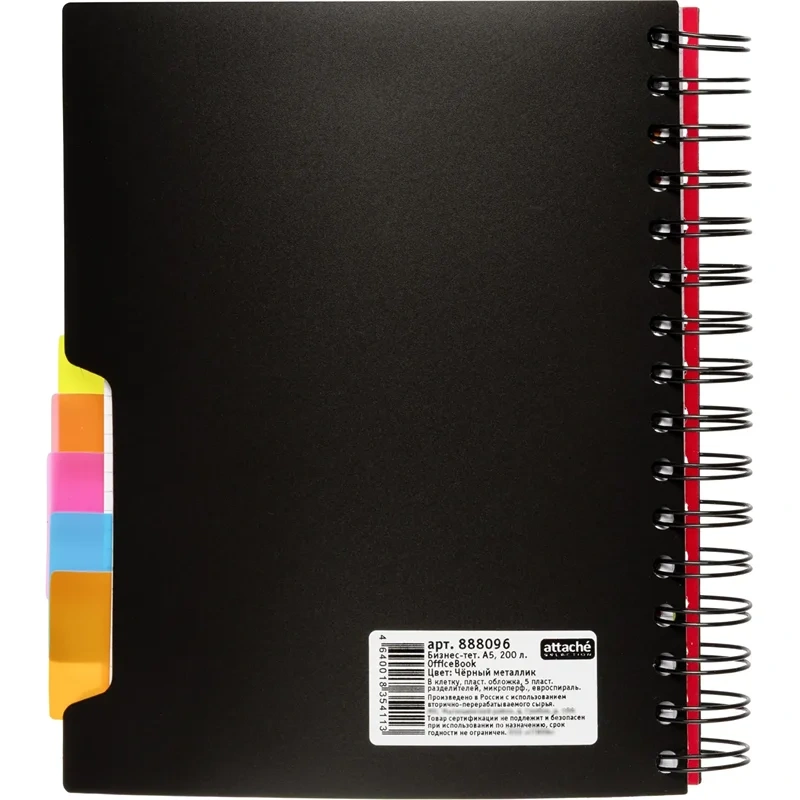 Бизнес тетрадь Attache Office book черный, А5, 200 листов, в клетку, на спирали