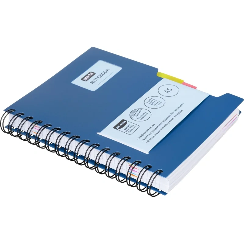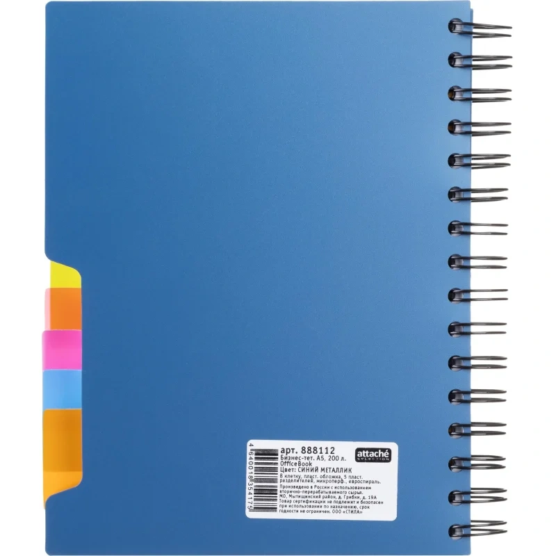 Бизнес тетрадь Attache Office book синий, А5, 200 листов, в клетку, на спирали
