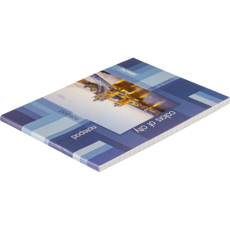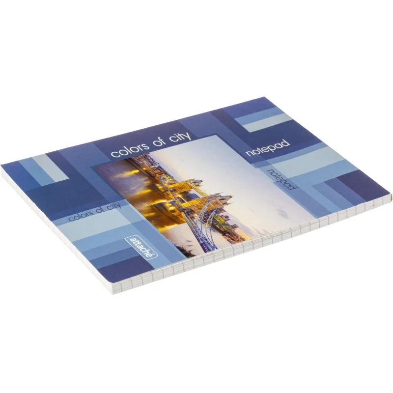 Блокнот Attache формата А6. Блокнот в глянцевой обложке, выполненной из мелованного картона, плотностью 200 г/кв.м. Внутренний блок на склейке состоит из 60 листов (120 страниц), разлинованных в клетку. Блок: белая, офсетная бумага, плотность 60 г/кв.м. Размер блока: 101×145 мм. Бумага высокой степени белизны по плотности соответствует качественной офисной бумаге. Дизайн обложки представлен в виде пейзажа города.