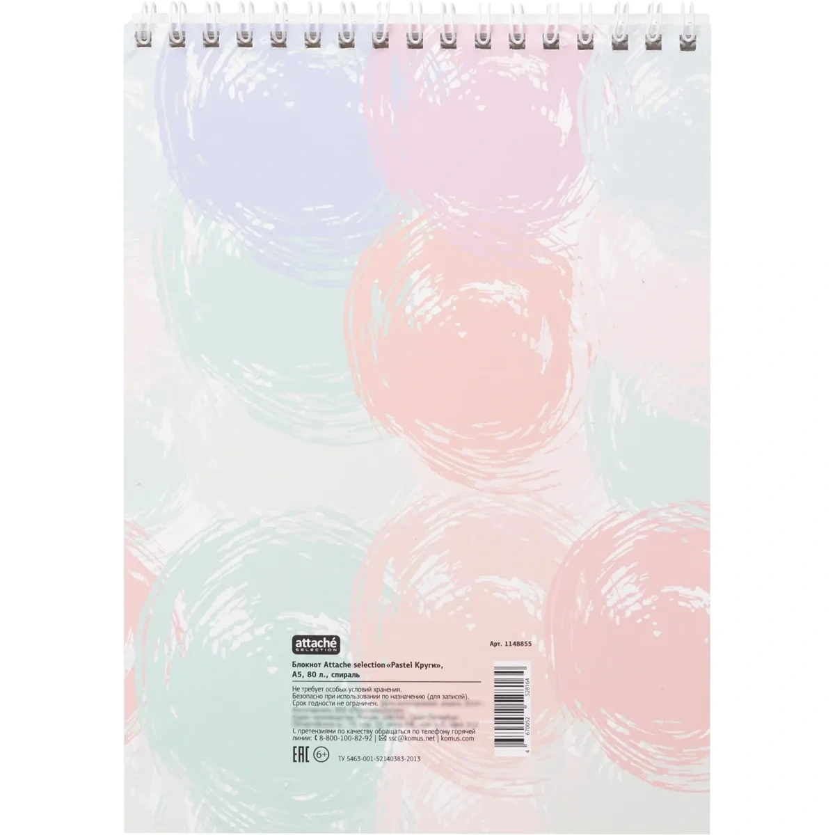 Блокнот Attache Selection Pastel Круги, А5, 80 листов, в клетку, на спирали, картон