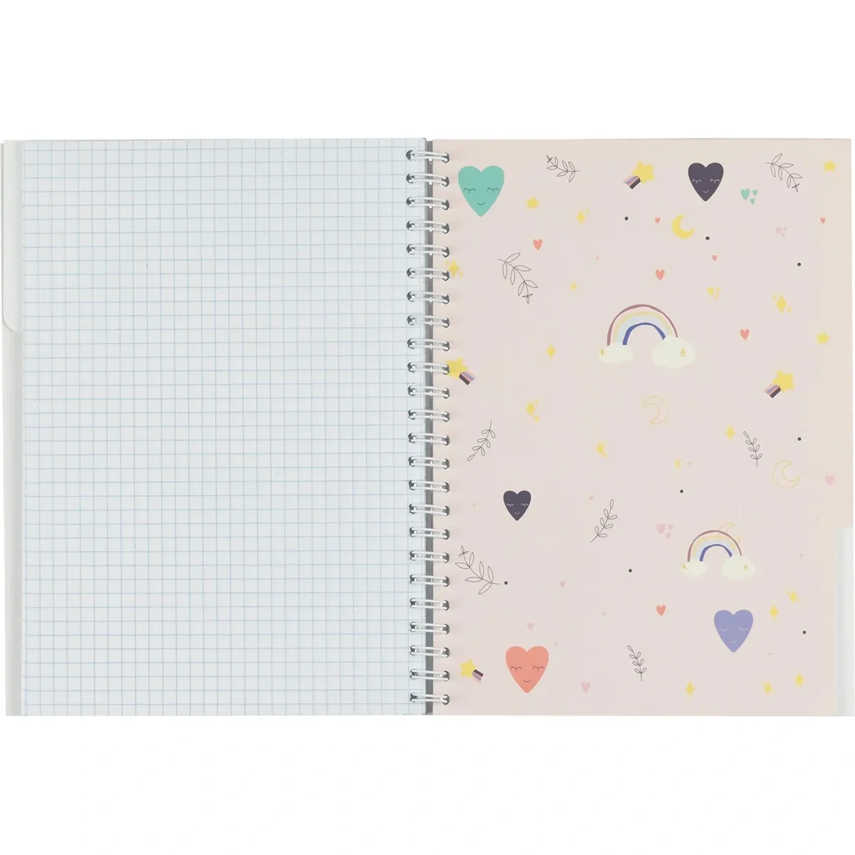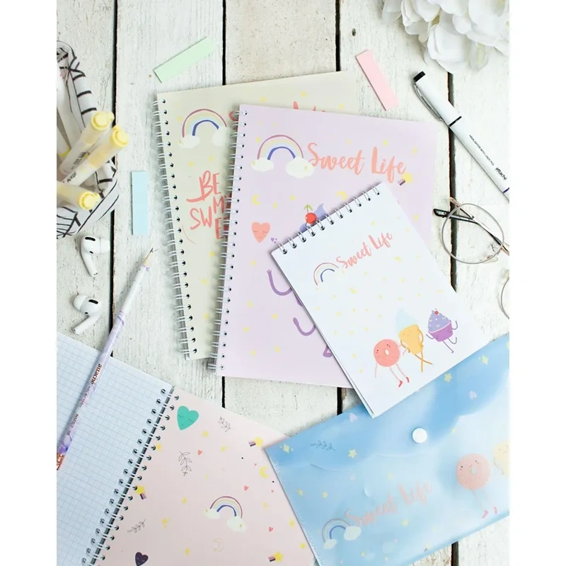 Тетрадь общая Attache Selection Sweet Life «Капкейк» А5 на спирали (металлическом гребне) в двумя картонными разделителями — предназначена для записей, используется в старших классах, студентами и в офисе. Обложка изготовлена из картона с цветной печатью и матовой ламинацией, плотность 230 г/кв.м. Внутренний блок — белая бумага, офсетная 60 г/кв.м, белизна — 100%. Тетрадь толщиной 96 листов в клетку. Размер тетради — 145×203 мм. В тетради — два разделителя из картона 230 г/кв.м, с матовой ламинацией, делят тетрадь на три блока по 32 листа.