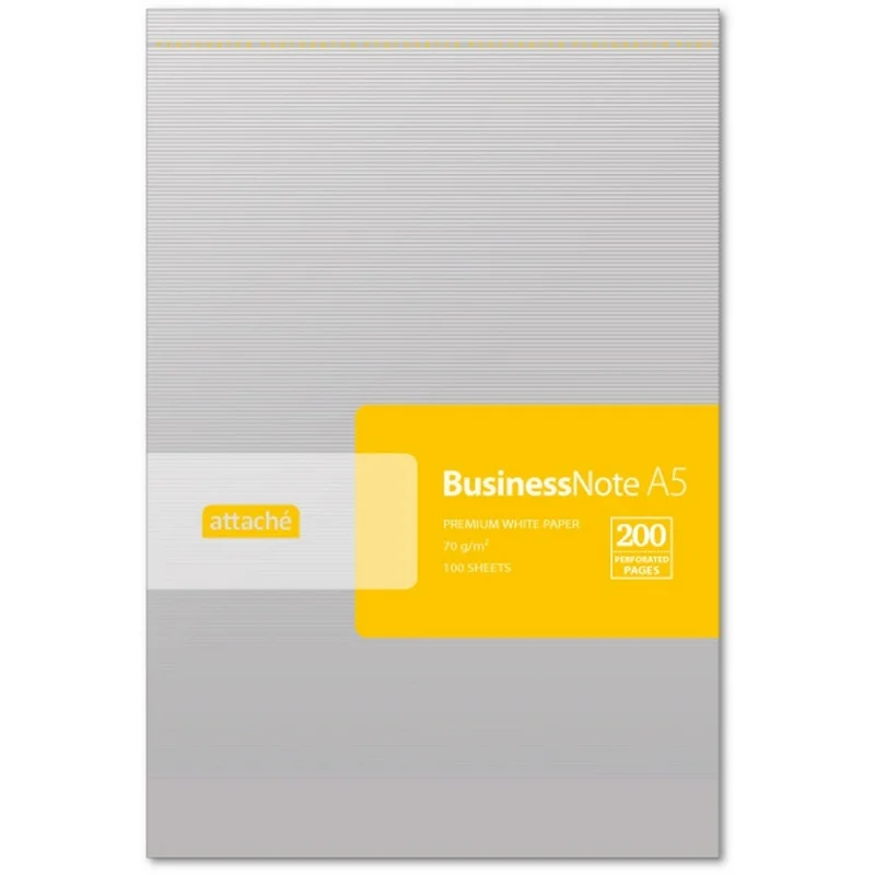Блокнот Attache Микроперфорация офисного дизайна. Глянцевая обложка серебристого цвета изготовлена из картона. Плотность обложки — 200 г/кв.м. Жесткая подложка защищает бумагу от деформации. Проклеенный и сшитый внутренний блок состоит из 100 листов (200 страниц) бумаги высокой степени белизны без линовки. Размер блока — 143×212 мм. Тип крепления — склейка плюс металлические скобки. Микроперфорация в виде четырех отверстий позволяет использовать блокнот в