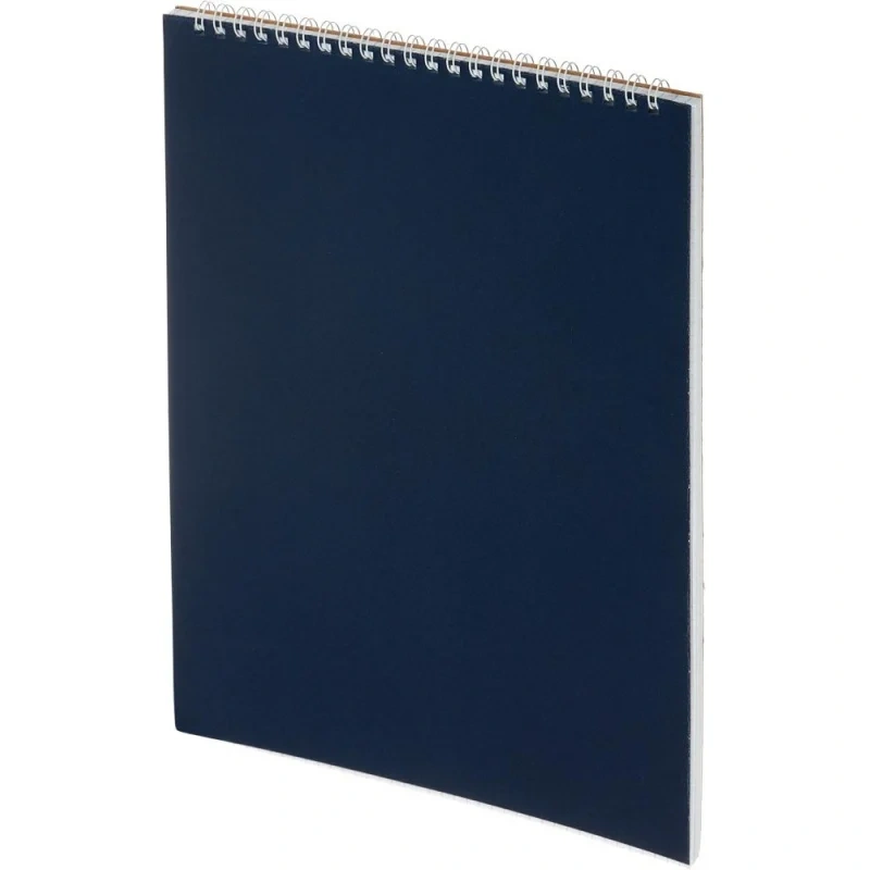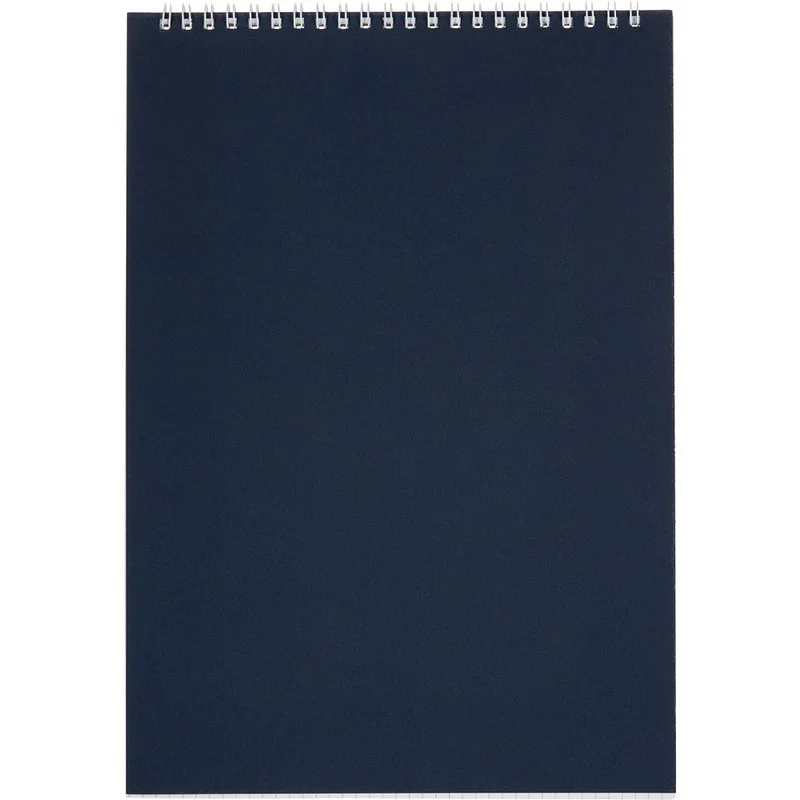 Блокнот Альт классического дизайна. Однотонная обложка синего цвета выполнена из картона. Плотность обложки — 300 г/кв.м. Внутренний блок, скрепленный по горизонтальному краю металлической спиралью, содержит 60 листов (120 страниц) с отрывной перфорацией. Плотная белая бумага с полями разлинована в клетку. Размер блока — 198×285 мм. Размер изделия: 200×290 мм. Блокнот имеет формат А4. Минимальный тираж под нанесение логотипа от 30 штук.