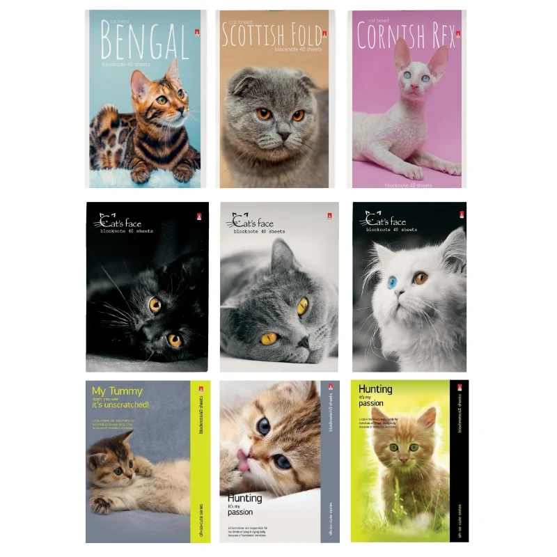Блокнот Альт Котята, А6, 40 листов, в клетку, на скрепке, картон, ассорти