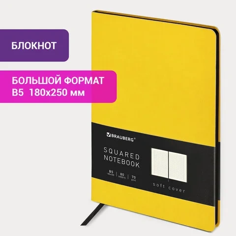 Блокнот БОЛЬШОЙ ФОРМАТ (180х250 мм) B5, BRAUBERG 'Metropolis Mix', под кожу, 80 л., клетка, желтый,