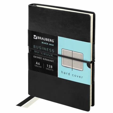 Блокнот Brauberg Black Jack, А6, 128 листов, в клетку, на сшивке, гладкая кожа