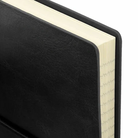 Мягкая интегральная обложка стилизована под кожу. Имеет закругленные уголки. Подходит для горячего тиснения. 128 листов позволят зафиксировать большой объем информации. Линовка блока в клетку дает возможность аккуратно заполнить цифровые значения, а также нанести чертежные зарисовки. Внутренний блок выполнен из офсета кремого цвета плотностью 70 г/м2 и крепится к обложке с помощью книжного переплета. Снабжен резинкой-фиксатором, благодаря чему не откроется в сумке или портфеле и листы не помнутся. Дополнением является закладка-ляссе, с помощью которой при необходимости можно быстро открыть нужную страницу. Формат блокнота А6 (100х150 мм) позволит владельцу поместить его в кейс или сумку габаритов.
