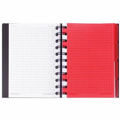 Блокнот формата А6 на евроспирали содержит 150 листов с линовкой в клетку, что позволяет зафиксировать большой объем нужной информации. Имеет боковое расположение переплета, 4 разделителя и резинку-фиксатор. Обложка выполнена из пластика. Внутренний блок состоит из белой офсетной бумаги плотностью 60 г/м2.