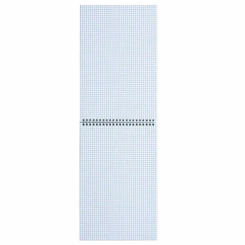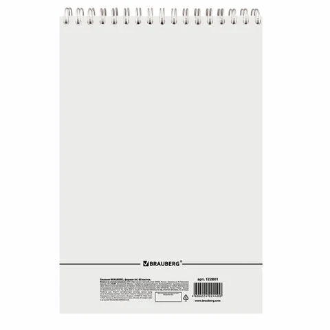 Блокнот формата А4 на евроспирали содержит 80 листов с линовкой в клетку, что позволяет зафиксировать большой объем нужной информации. Имеет жесткую подложку, позволяющую делать записи на весу, и верхнее расположение переплета. Обложка выполнена из мелованного картона плотностью 200 г/м2. Внутренний блок состоит из белой офсетной бумаги плотностью 60 г/м2.