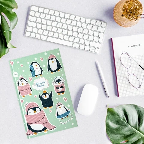 Блокнот Brauberg Kids Пингвинчики, А5, 80 листов, в клетку, твердая обложка