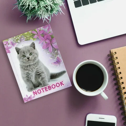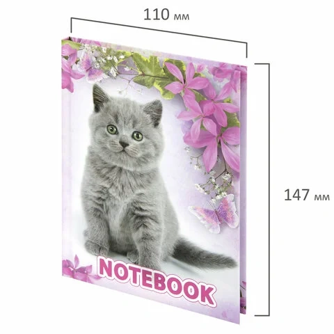 Записная книжка Brauberg Котята, А6, 80 листов, в клетку, на сшивке, ламинированный картон/ лак