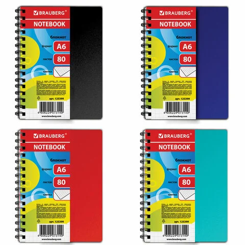 Блокнот Brauberg Офисный однотонный, А6, 80 листов, в клетку, на спирали, пластик