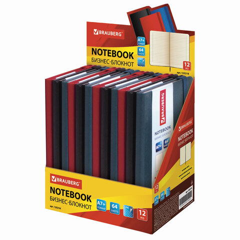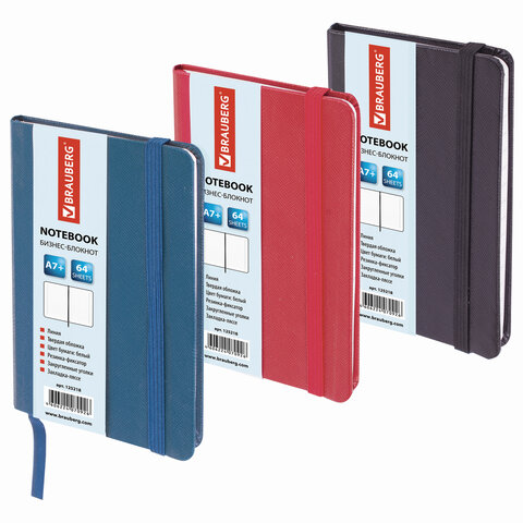 Блокнот Brauberg Select, А7+, 64 листа, в линейку, на сшивке, искусственная кожа, ассорти