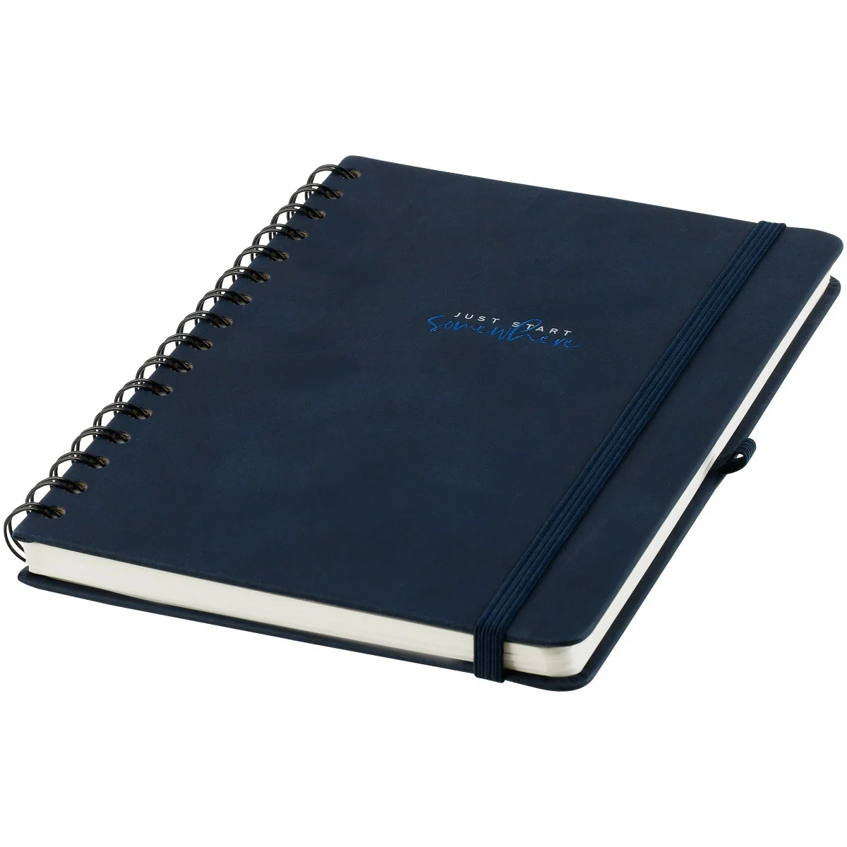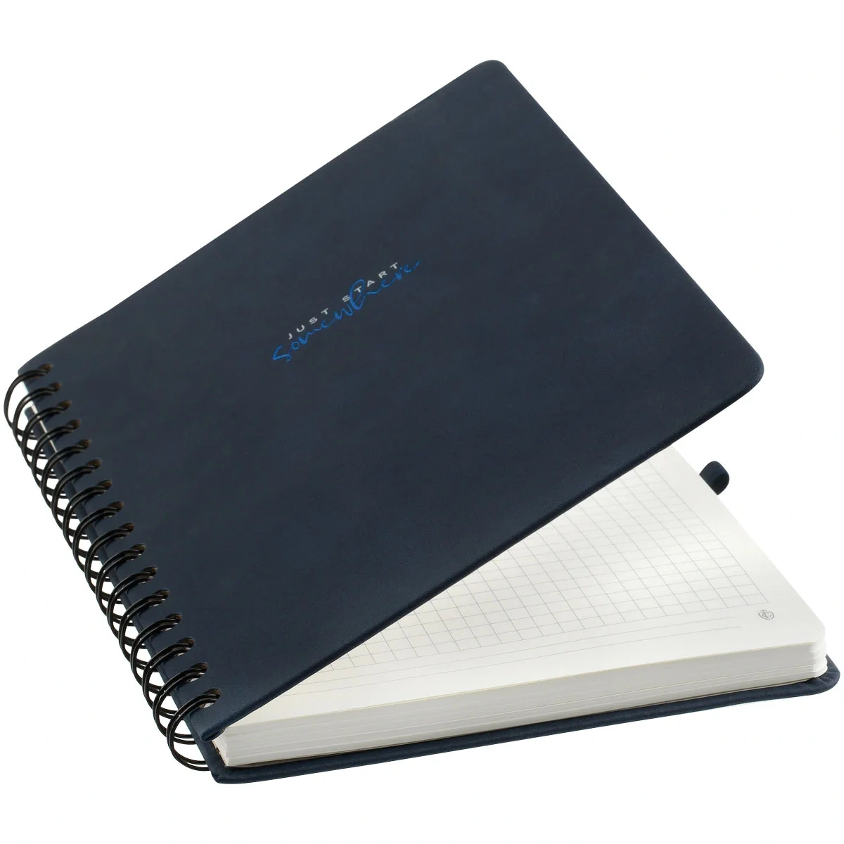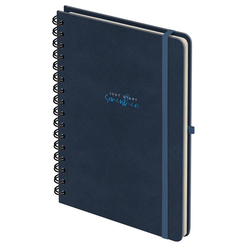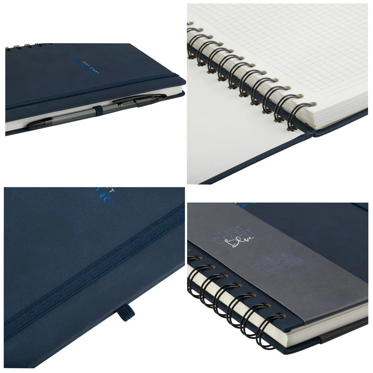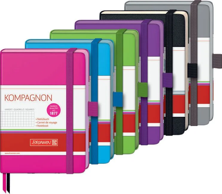 Жесткая ламинированная обложка. Цветные боковая застежка-резинка, крепление для ручки и обрез. Кремовая бумага 80г/м2. Две вклеенных закладки. Боковой карман для бумаг на внутренней стороне задней обложки. Пронумерованные страницы, клейкие закладки.
