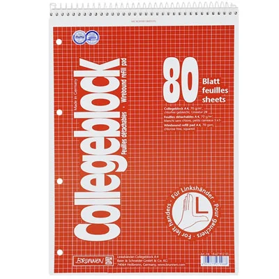Блокнот Brunnen красный, А4, 80 листов, в клетку, на спирали, для левши