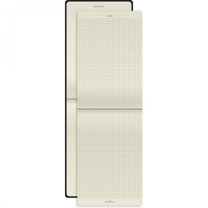 Блокнот Bruno Visconti Megapolis в классическом переплете черного цвета со скругленными углами. Фиксирующая резинка в тон расположена по горизонтали, предотвращает раскрытие блокнота и смятие страниц. Внутренний блок состоит из 100 листов. Бумага — тонированный офсет плотностью 70 г/кв.м. Формат А6, разлиновка в клетку. На задней части обложки есть конверт для мелких записей или визиток. Последние 8 листов блокнота с перфорацией.