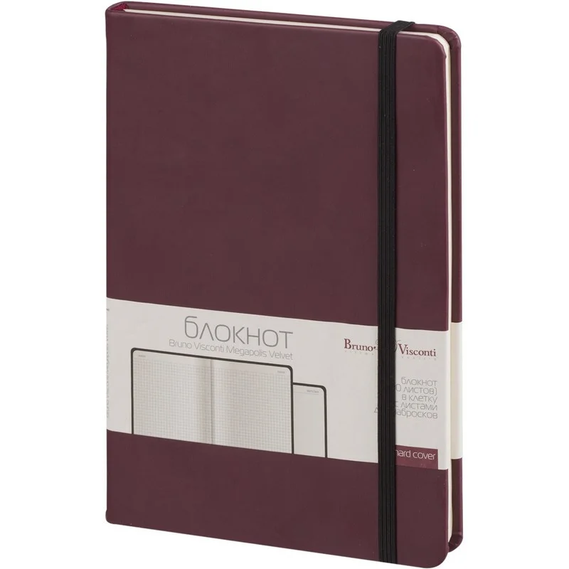 Блокнот Bruno Visconti Megapolis Velvet бордовый, А5, 100 листов, в клетку, на сшивке, иск. кожа