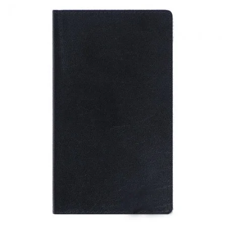 Обложка - съемная из натуральной кожи, закругленные уголки, строчка по краю. Цвет - синий. Блок на пластиковом гребне - тонированный, офсет 70 г/м2, линейка, вставка - алфавитная книга с вырубкой. Упаковка - пластиковая полупрозрачная коробка.