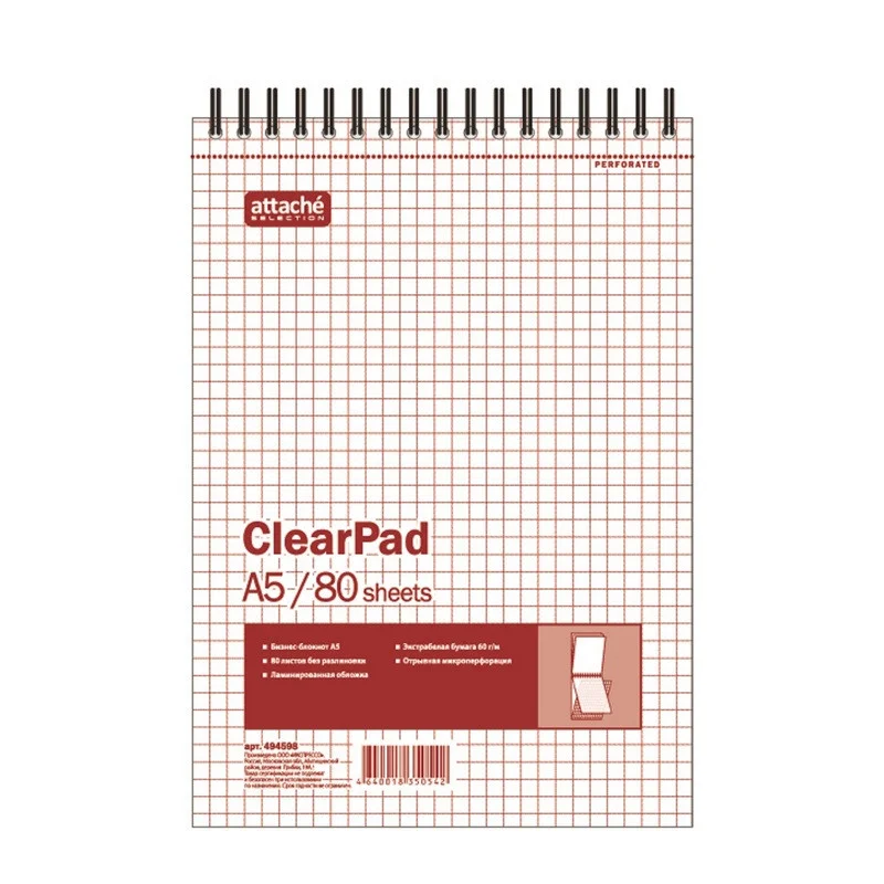 Блокнот Attache Clear Pad, А5, 80 листов, нелинованный, на спирали, ламинированный картон