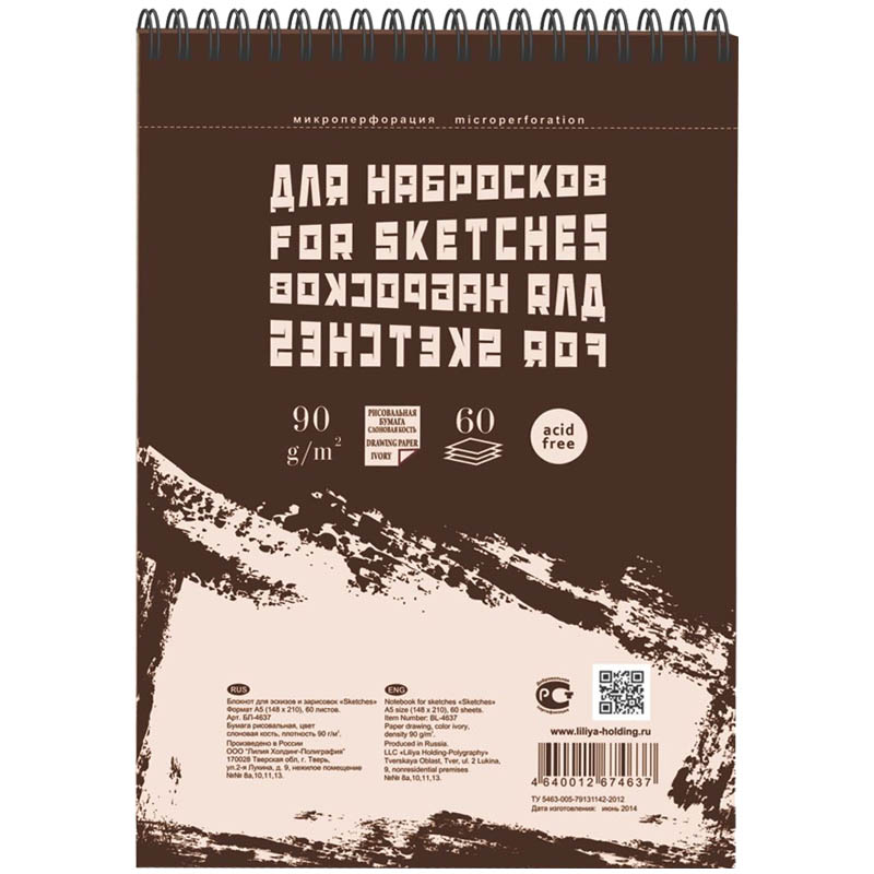 Блокнот для рисования Лилия Холдинг Sketches, А5, 90г/м2, 60 листов, на спирали сверху, тонированный
