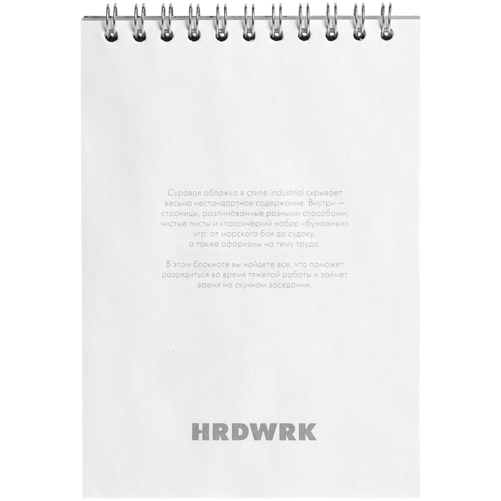 У блокнота с таким принтом две большие целевые аудитории. Одна — компании, работающие в тяжелой промышленности, другая — все остальные. Согласитесь, довольно мало тех, кто не считает свою работу тяжелой!Суровая обложка в стиле индастриал скрывает весьма нестандартное содержание. Внутри — страницы, разлинованные разными способами, чистые листы и классический набор «бумажных» игр: от морского боя до судоку, а также афоризмы на тему труда.В этом блокноте вы найдете все, что поможет разрядиться во время тяжелой работы и отвлечься на скучном заседании.Обложка выполнена из дизайнерской бумаги Splendorlux metal argento плотностью 250 г/м.Индивидуальный блок, бумага белая плотностью 70 г/м, 80 листов. Размер изделия: 10,5х15 см. Материал: бумага. Возможные виды нанесения: Шелкография (1 цвет);