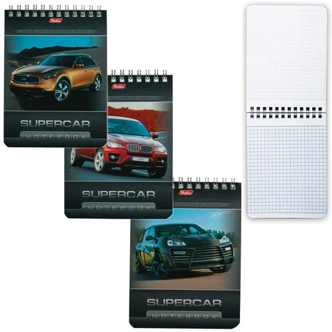 Блокнот Hatber Машины, А6, 40 листов, в клетку, на спирали, лакированный картон, ассорти