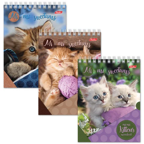 Блокнот Hatber Милые котята, А6, 40 листов, в клетку, на спирали, лакированный картон