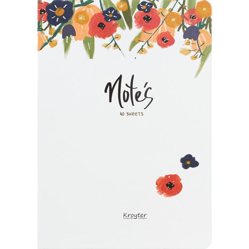 Блокнот Kroyter Flowers, А4, 40 листов, в клетку, на скрепке, картон