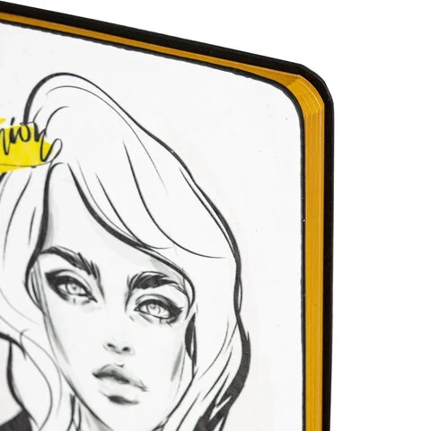 Внутренний блок включает 80 листов белой бумаги плотностью 70 г/м2. Благодаря малому формату А6 блокнот удобно использовать как в офисе, так и на выездных деловых встречах. Интегральная (мягкая) обложка с полноцветной печатью делает блокнот неповторимым и запоминающимся. Срез блокнота прокрашен, что придает ему особый шарм. Дополнением является закладка-ляссе, с помощью которой можно быстро открыть блокнот на нужной странице.