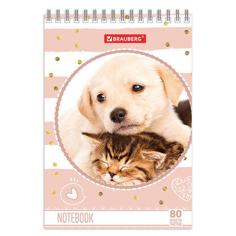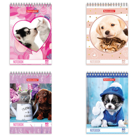Блокнот МАЛЫЙ ФОРМАТ (105х150 мм) А6, 80 л., гребень, твердый картон, клетка, BRAUBERG, 'Любимчики',