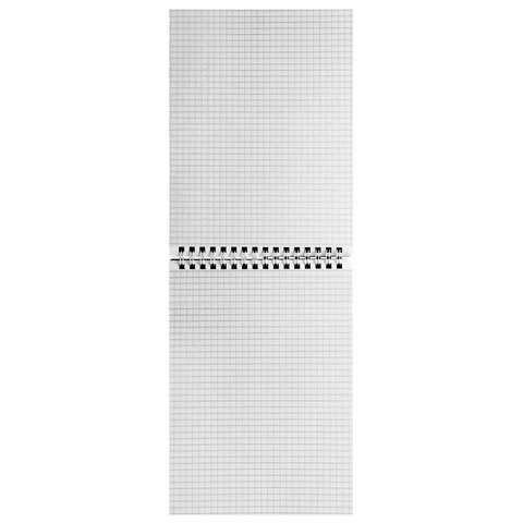 Блокнот формата А6 на евроспирали содержит 80 листов с линовкой в клетку, что позволяет зафиксировать большой объем нужной информации. Имеет жесткую подложку, позволяющую делать записи на весу и верхнее расположение переплета. Обложка выполнена из мелованного картона плотностью 200 г/м2. Внутренний блок состоит из белой офсетной бумаги плотностью 60 г/м2.
