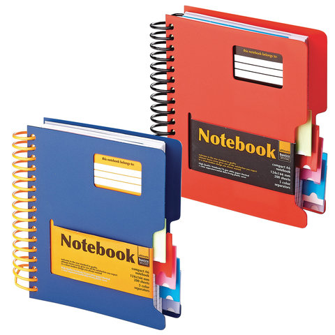 Блокнот МАЛЫЙ ФОРМАТ (144х145 мм) А6, 200 л., спираль, обложка пластик, разделители, клетка, Альт, '