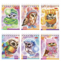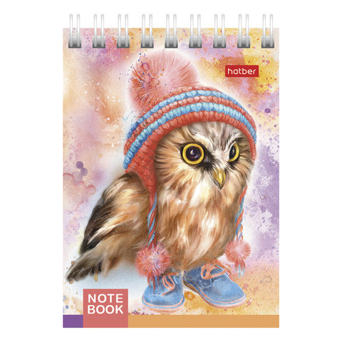 Блокнот МАЛЫЙ ФОРМАТ (75х105 мм) А7, 40 л., гребень, обложка картон, клетка, HATBER, 'Совушки', 40Б7